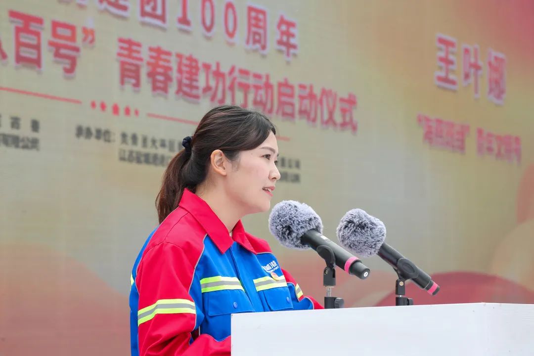 活動中,與會領導為12個圍繞服務重大項目而組成的青年集體突擊隊進行授旗,青年突擊隊、青年文明號代表作表態發言,并舉行了“強國復興有我 青春燃在海港”鹽城港青年宣誓儀式。
