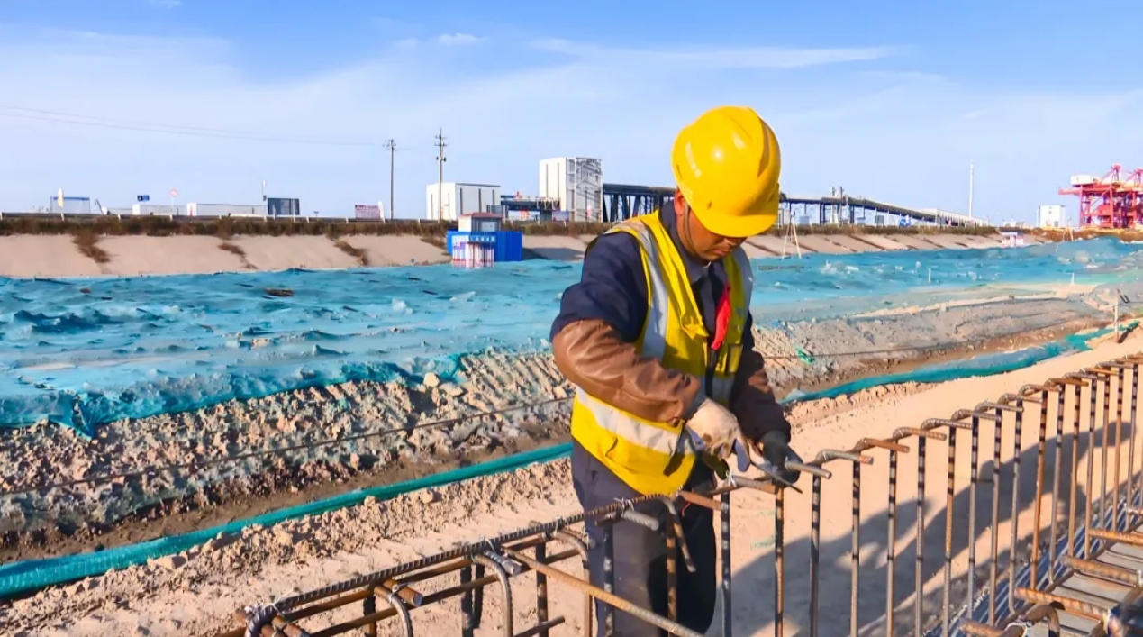 ????濱海港區(qū)主港區(qū)北區(qū)通用碼頭三期工程位于濱海港區(qū)規(guī)劃主港池北側(cè),新建一個以裝卸散裝為主的公共碼頭,總投資約8億元,共布置10萬噸及通用泊位1個,泊位總長310m,設(shè)計通過能力為415萬噸/年,可滿足散貨每年270萬噸、件雜貨每年120萬噸的吞吐量要求。項目于2022年12月開工建設(shè),計劃于今年12月完工。
