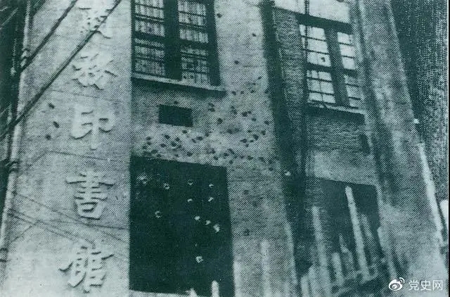1927年4月12日,蔣介石在上海發動反革命政變,上海工人糾察隊總指揮部所在地商務印書館遭到襲擊,大樓上彈痕斑斑。