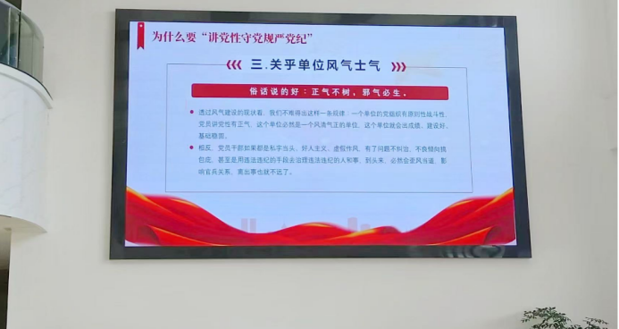 嚴(yán)格規(guī)矩意識(shí)。定期開展紀(jì)律規(guī)矩專題教育,深刻剖析典型案例,以案為鑒敲響廉潔警鐘;將辦公走廊打造成“廉政文化長(zhǎng)廊”;開辟融思想性、政策性、觀賞性、教育性于一體的廉政宣傳陣地,讓廉潔文化入腦入心更促行。