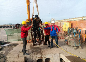 事出緊急,胡吟來不及思考,即刻號召黨員突擊隊組織現場人員有序撤離,并對現場設備、機械進行加固,起重機大臂收回,集裝箱、鋼護筒采用纜繩與臨時焊接的鋼筋綁牢固定。短短數小時內便完成了現場的加固工作,確保了此次強對流天氣的順利度過。