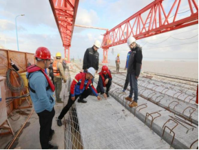 “今日已完成P72-76南半幅護輪坎澆筑、P22橫梁舊橋板切割拆除、P26/27南半幅橫梁鋼筋綁扎立模、P38/C鉆孔、P36/C沖擊鉆引孔、P32/62排架水下清障以及P67-68預制空心板安裝共計七項工作,無安全隱患發生。”