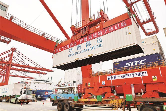 截至目前,“絲路海運”命名航線已累計開行超14000艘次,完成集裝箱吞吐量超1660萬標箱,2條散雜貨航線累計開行近200艘次,貿易額約115億元;“絲路海運”品牌內涵持續延伸,推動跨界合作,逐步打造“絲路海運+氣象”“絲路海運+貿易”“絲路海運+多式聯運”等廣泛且合作共贏的生態圈。