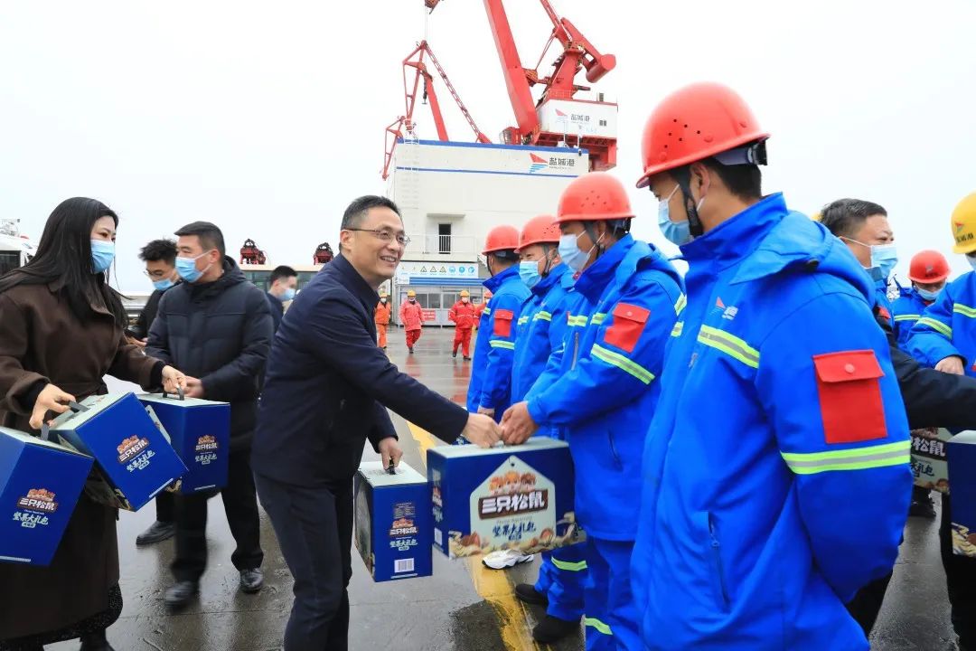 1月22日,大年初一,碼頭一線到處洋溢著節(jié)日喜慶氣氛。受集團(tuán)黨委、董事會(huì)委托,當(dāng)天上午,集團(tuán)黨委副書記、董事、總經(jīng)理陸帥率隊(duì)前往大豐港區(qū)看望慰問堅(jiān)守在一線工作崗位的工作人員,代表集團(tuán)黨委、董事會(huì)向他們致以新春的祝福和節(jié)日的問候。鹽城海關(guān)二級(jí)高級(jí)主辦李健,集團(tuán)副總經(jīng)理袁欣等參加。