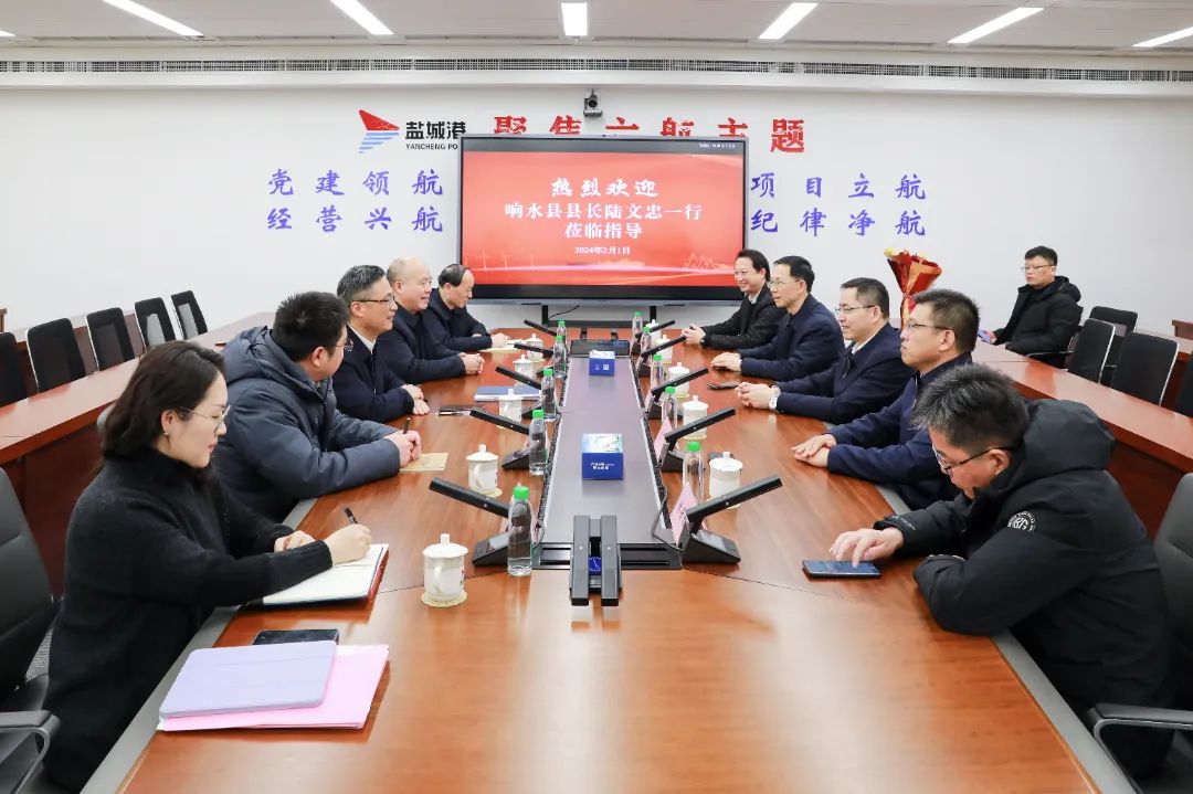 陸帥對陸文忠一行的到來表示歡迎。他說,2023年,鹽城港以推動高質量發展為根本著力點,緊扣“提質增效”“項目立航”兩個主題年活動,狠抓落實、務實高效,首次進入全國沿海港口前20強,提前兩年半完成集團“十四五”既定目標。未來,鹽城將持續關注響水縣經濟發展,加大與地方政府之間的溝通力度,狠抓響水港區項目建設,切實與響水縣委、縣政府心往一處想,勁往一處使,共同為地方經濟發展做出更大貢獻。