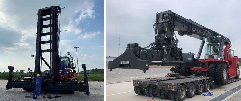 集裝箱堆高機和正面起重機廣泛用于碼頭、堆場的集裝箱裝卸、空箱堆疊、水平運輸等,它具有機動靈活、操作方便、穩定性好、輪壓較底、堆碼層數高等優點。