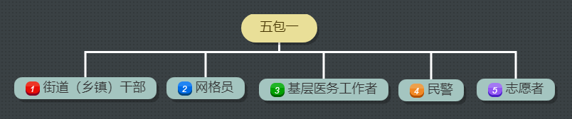 3.社區(qū)防控“五包一”:1名街道或鄉(xiāng)鎮(zhèn)干部、1名社區(qū)網(wǎng)格員、1名基層醫(yī)療衛(wèi)生機(jī)構(gòu)服務(wù)人員、1名社區(qū)民警、1名及以上志愿服務(wù)者,開展社區(qū)防控工作。