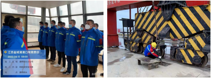通用碼頭分公司緊緊圍繞“三位一體”的總體要求,結合碼頭自身實際,根據(jù)碼頭應急預案立即開展各項防風舉措,切實做到思想到位、工作到位、人員到位、措施到位。應急車輛、應急人員時刻保持待命狀態(tài),密切關注氣象部門的監(jiān)測預報,落實24小時值班,確保通信聯(lián)絡暢通。安全人員對防風索具和滑輪鐵靴開展全面巡查,組織應急處置人員對惡劣天氣方面的專題教育,提高員工的安全意識、責任意識和應急處置能力。