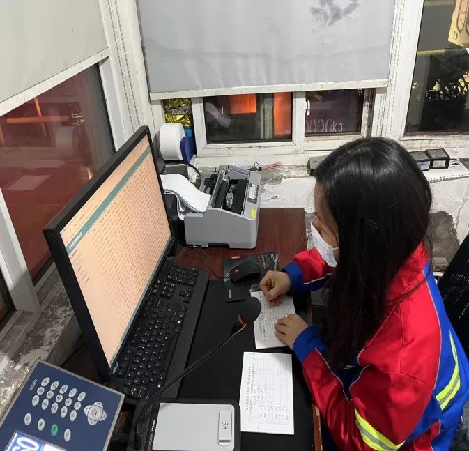 深夜的磅房里沒有一絲倦意,來往過磅的車輛一輛接著一輛,確認(rèn)車號、填寫小票、記錄數(shù)據(jù)、協(xié)調(diào)客戶,這一系列工作就像糖葫蘆一樣串在一起,她們事無巨細(xì)、精益求精,從容應(yīng)對,游刃有余。