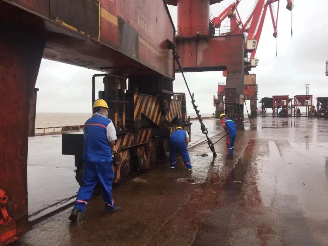 面對臺風(fēng)“梅花”帶來的惡劣天氣影響,散貨碼頭分公司加強(qiáng)應(yīng)急物資儲備、重點(diǎn)部位排查,嚴(yán)格執(zhí)行值班值守制度,全力以赴做好各項(xiàng)防御工作。截至14日18:00,共巡檢門機(jī)、配電室隱患8處,配備沙包、鐵鍬、雨衣、雨靴、手電筒等物資30余件。安排值班人員12人,制定防臺風(fēng)巡檢簽字表2種,張貼安全警示標(biāo)語5條,加固相關(guān)設(shè)備設(shè)施9處,竭盡全力做好各項(xiàng)防臺應(yīng)急備戰(zhàn)工作。