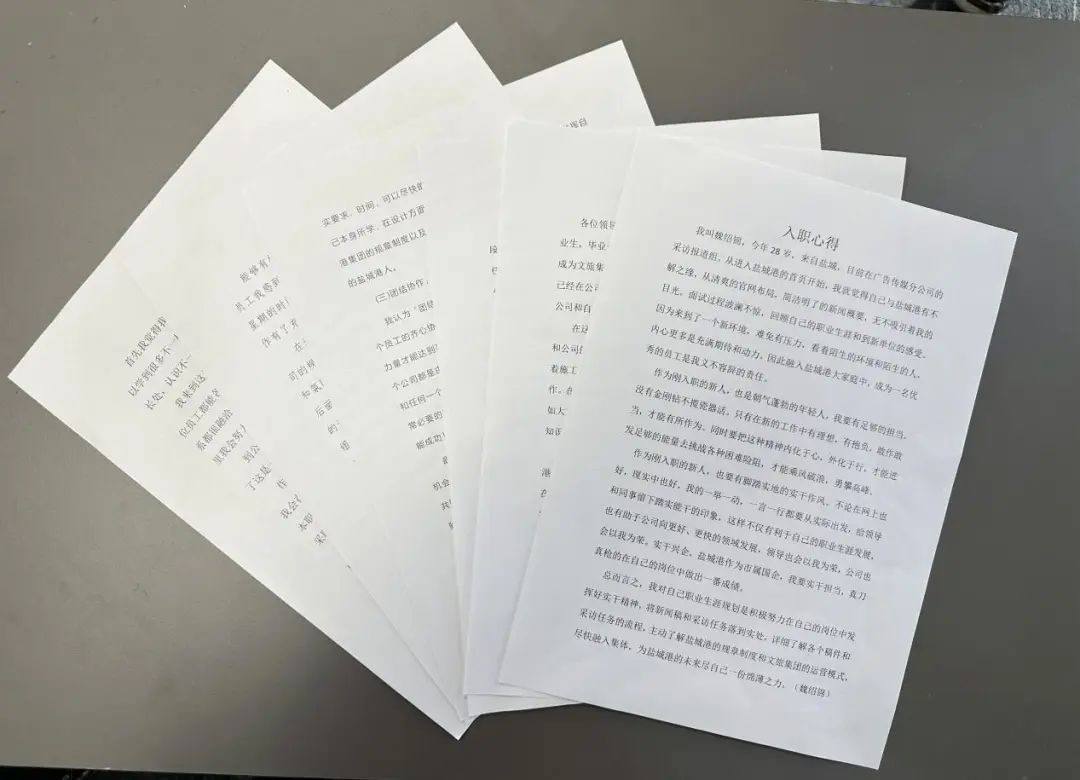 新員工們步入工作崗位后,提高了素質(zhì)修養(yǎng),磨礪了業(yè)務(wù)能力。面對(duì)新的環(huán)境、新的起點(diǎn),他們也有了特別的感悟。“初入鹽城港,不懂的地方比較多,在第一次采訪時(shí),面對(duì)突如其來的新聞稿寫作顯得‘手忙腳亂’,但同事們卻沒有絲毫不耐煩,而是熱情地傳授我撰寫、拍攝經(jīng)驗(yàn)。當(dāng)所有工作圓滿完成后,這種奮斗過后的喜悅,是溢出來的幸福感。”“到文旅集團(tuán)這個(gè)大家庭也已經(jīng)有一個(gè)月時(shí)間了,我跟著前輩們深入碼頭一線,近距離感受鹽城港精神,我將繼續(xù)提高自己的專業(yè)水平,拍出更多更好的作品展現(xiàn)鹽城港的風(fēng)貌。”短短的一個(gè)月里,新員工們惜時(shí)如金,踏踏實(shí)實(shí)學(xué)理論,認(rèn)認(rèn)真真練技能,業(yè)務(wù)能力不斷提高,責(zé)任意識(shí)持續(xù)增強(qiáng),為日后工作校準(zhǔn)了方向、蓄積了動(dòng)能。