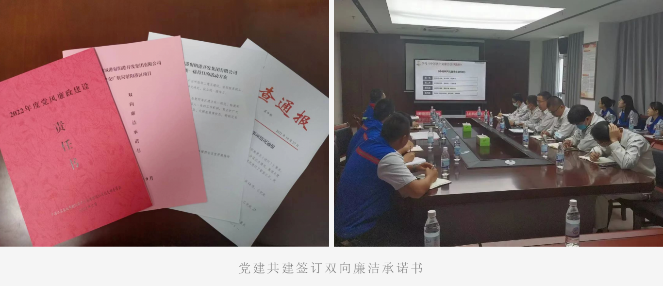 出新招,抓住重點,有的放矢造濃清廉之風。緊盯工程領域,射陽港區紀檢聚焦合作方、第三方企業在港區存在的痛點、難點和堵點,找準切入點,對癥下藥。黨建共建引領創建清廉工地。針對工程項目領域易發腐敗現象問題,港區黨總支與中交廣航射陽港區項目部黨支部開展黨建共建活動,簽訂了《雙向廉潔責任書》,通過互學互促互督系列活動,從源頭上預防和遏制腐敗,清正廉潔建項目;開展專項督查,打造廉潔文化。建立廉潔文化走廊,建成紀法廣場陣地,把廉潔文化元素展示在港區日常工作生活環境中,造濃港區廉潔氛圍。針對工程建設領域多發的欠薪現象,港區紀檢多次對港區各在建工程項目開展農民工工資支付情況專項督查,保證農民工合法權益。改進提升作風。建立周五統一接待日制度,傾聽港區職工群眾心聲,真正做到協調矛盾,解決問題,切實維護港區經營環境的穩定;開展庸、懶、散、浮、拖問題專項整治活動,強化全體員工的紀律觀念,進一步樹立勤廉之風。