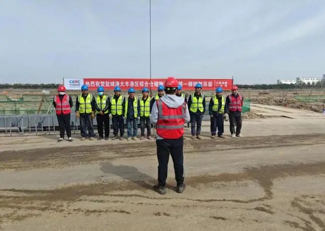 在機械及司號聲中,第一根預制鋼架被徐徐吊起,穩穩地安裝在承臺基礎上,由項目咨詢公司代管的大豐港綜合倉儲物流項目鋼結構工程首吊成功完成,標志著該項目正式進入安裝施工階段,開啟建設新篇章。