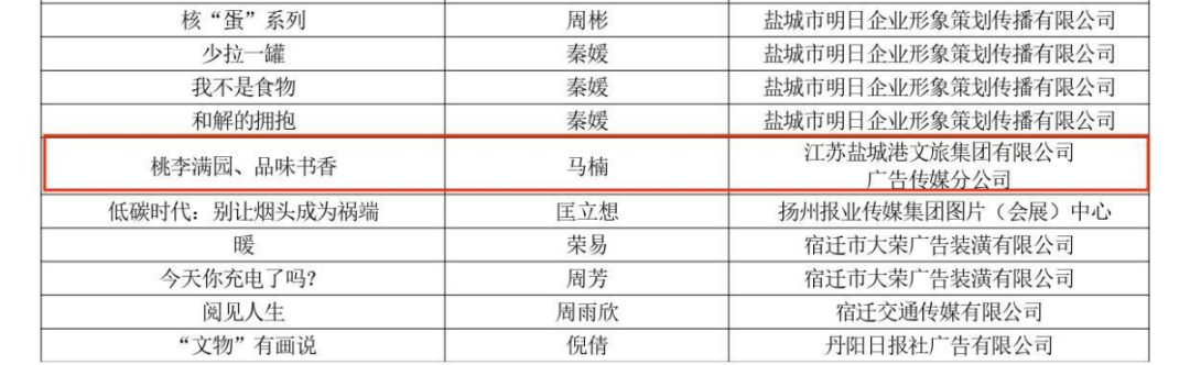 近年來,廣告?zhèn)髅椒止景l(fā)揮巾幗榜樣的示范作用,她們奮斗在各個部門、各個崗位,用奮斗匯聚“她力量”、用實(shí)干撐起“半邊天”,傳遞著鹽城港女性正能量。本屆大賽獲獎的兩項(xiàng)作品《桃李滿園、品味書香》職業(yè)組公益類作品銅獎、《尋找非遺傳承人》職業(yè)組公益類作品優(yōu)秀獎?wù)菑V告?zhèn)髅椒止菊宫F(xiàn)“她力量”的真實(shí)寫照。