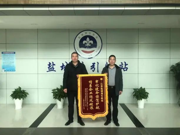 近日,“CL天京”輪船舶船東香港汭灃航運有限公司專程將“牢記使命保駕護(hù)航 情系企業(yè)迎風(fēng)破浪”的錦旗送至鹽城港引航站,對我站提供的優(yōu)質(zhì)引航服務(wù)表示衷心感謝。