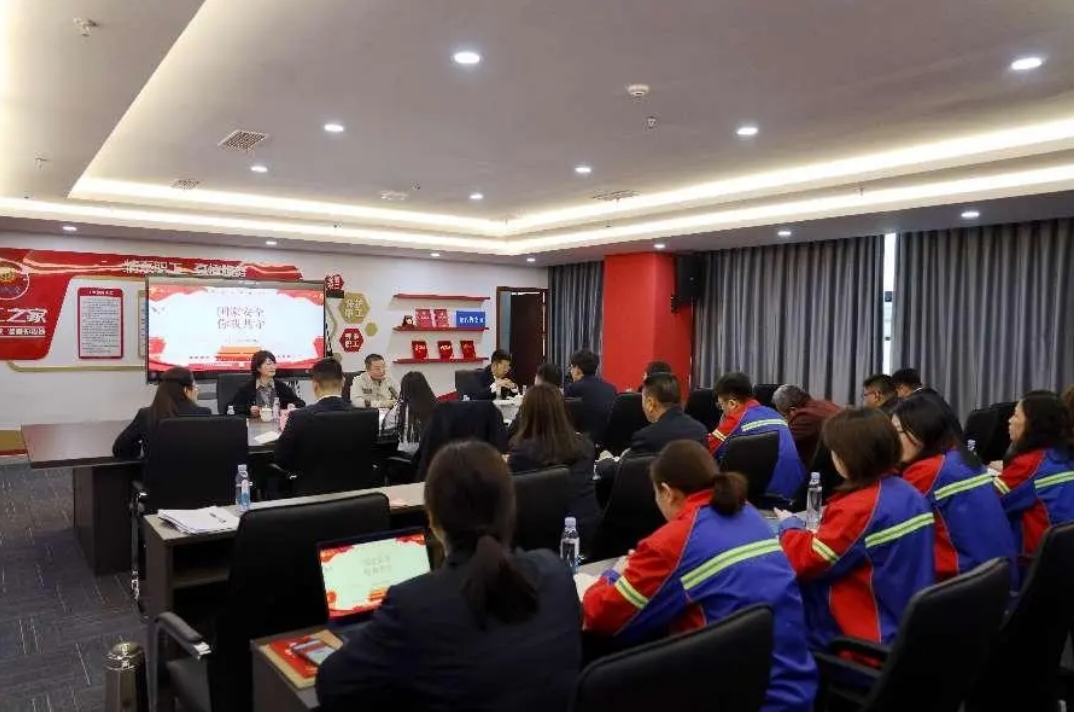 通過懸掛條幅、現場PPT講解等方式,向職工發放《中華人民共和國國家安全法》《中華人民共和國反間諜法》等宣傳手冊,詳細講解有關國家安全法、反恐怖主義法、道路交通安全法等國家安全的法律知識,提高對國家安全法律法規知曉度,使“維護國家安全人人有責”的觀念根植于心、入腦入心。