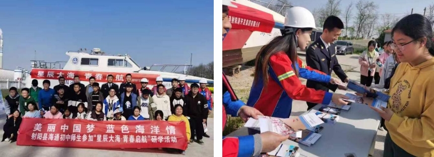為進一步強化港口文化建設,拓展港口文化進校園、進社區,鹽城港射陽港區聯動連云港航標處、鹽城海事局、海通鎮人民政府開展“星辰大海,青春啟航”水上安全知識進校園暨“港口開放日”活動。通過對港口碼頭設備設施、生產運營、航道通航等知識的解讀,向參加活動的30余名青少年學子們傳遞“沐光向海”的重要意義。