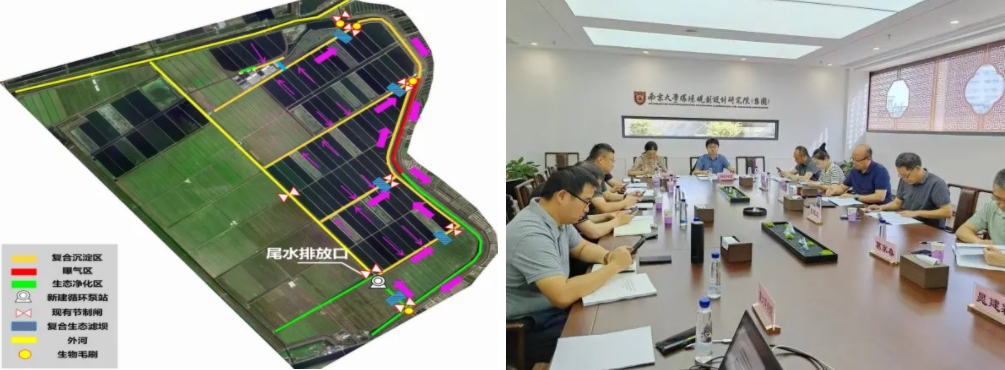 為明確區(qū)域尾水治理方案,農(nóng)業(yè)科技集團(tuán)通過(guò)公開(kāi)招標(biāo),委托南京大學(xué)環(huán)境規(guī)劃設(shè)計(jì)研究院集團(tuán)股份公司編制《東方綠洲養(yǎng)殖區(qū)域養(yǎng)殖尾水治理工程實(shí)施方案》《生物多樣性評(píng)價(jià)報(bào)告》以及《有限人為活動(dòng)論證報(bào)告》。為了更快、更好編制方案,農(nóng)業(yè)科技集團(tuán)明確專人和編制單位深入養(yǎng)殖區(qū),詳細(xì)了解區(qū)域溝塘分布、養(yǎng)殖品種、數(shù)量、密度、尾水排放集中期、水量及周邊企業(yè)污水排放等情況,對(duì)項(xiàng)目區(qū)內(nèi)6處點(diǎn)位水質(zhì)進(jìn)行取樣檢測(cè)。通過(guò)現(xiàn)場(chǎng)情況分析,計(jì)劃建設(shè)尾水凈化區(qū)約1746.93畝(占養(yǎng)殖凈面積約11.65%,占整個(gè)養(yǎng)殖區(qū)域9.95%),尾水總停留時(shí)間11.75天,日處理能力約20萬(wàn)方,確保養(yǎng)殖尾水排放達(dá)到《池塘養(yǎng)殖尾水排放標(biāo)準(zhǔn)》(DB32/4043-2021)淡水受納水域一級(jí)標(biāo)準(zhǔn)。