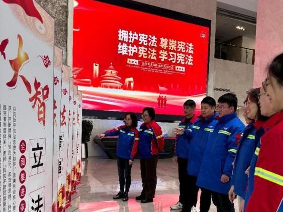 公司內(nèi)外的法治宣傳展板、橫幅吸引了眾多目光,讓員工在駐足觀看的同時(shí),對(duì)法律有了更直觀的認(rèn)識(shí)。同時(shí),通過觀看以憲法為主題的法治宣傳片、“大家”講憲法等形式,讓員工在工作之余也能享受到法治文化的熏陶。