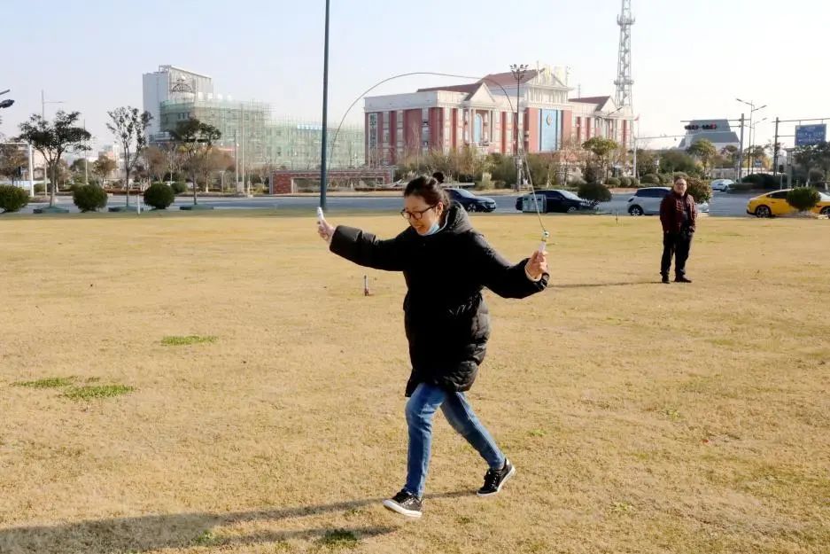 碧璽晴空下,首先進行的是“激流勇進”趣味跳繩跑。賽場上,選手揮動著跳繩,快速奔跑,一心想為團隊獲得好名次。隊友站在各自的“崗位”為比賽的選手歡呼助力。