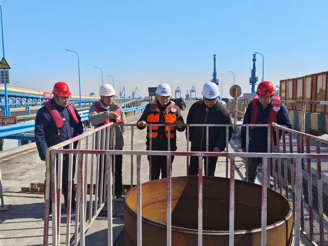 在大豐港區(qū)一期引橋搶險加固項(xiàng)目施工現(xiàn)場中