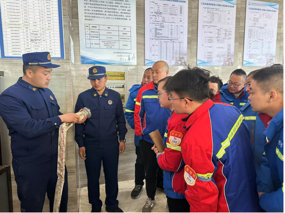 為進(jìn)一步提升消防安全管理水平,增強(qiáng)全員應(yīng)急處置能力。近日,鹽城港大豐港區(qū)特邀大豐港經(jīng)濟(jì)開發(fā)區(qū)政府專職消防救援隊(duì)開展消防安全專項(xiàng)培訓(xùn)及演練活動(dòng),并同步組織對(duì)港區(qū)消防中隊(duì)進(jìn)行慰問,以“活動(dòng)+慰問”的雙舉措形式,深化安全生產(chǎn)責(zé)任落實(shí),大豐港區(qū)各層級(jí)管理人員、安全條線及重點(diǎn)崗位人員參加。