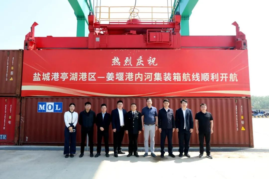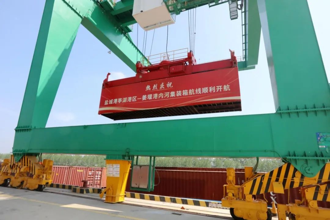 亭湖港區(qū)—姜堰港,內(nèi)河集裝箱航線正式開航