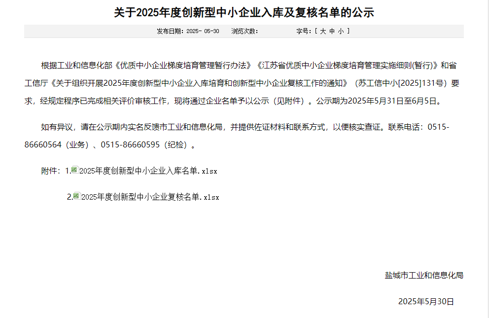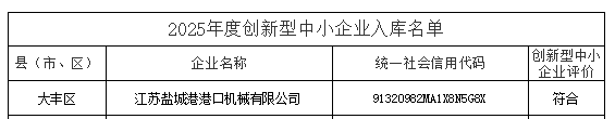 江蘇省創新型中小企業入庫名單