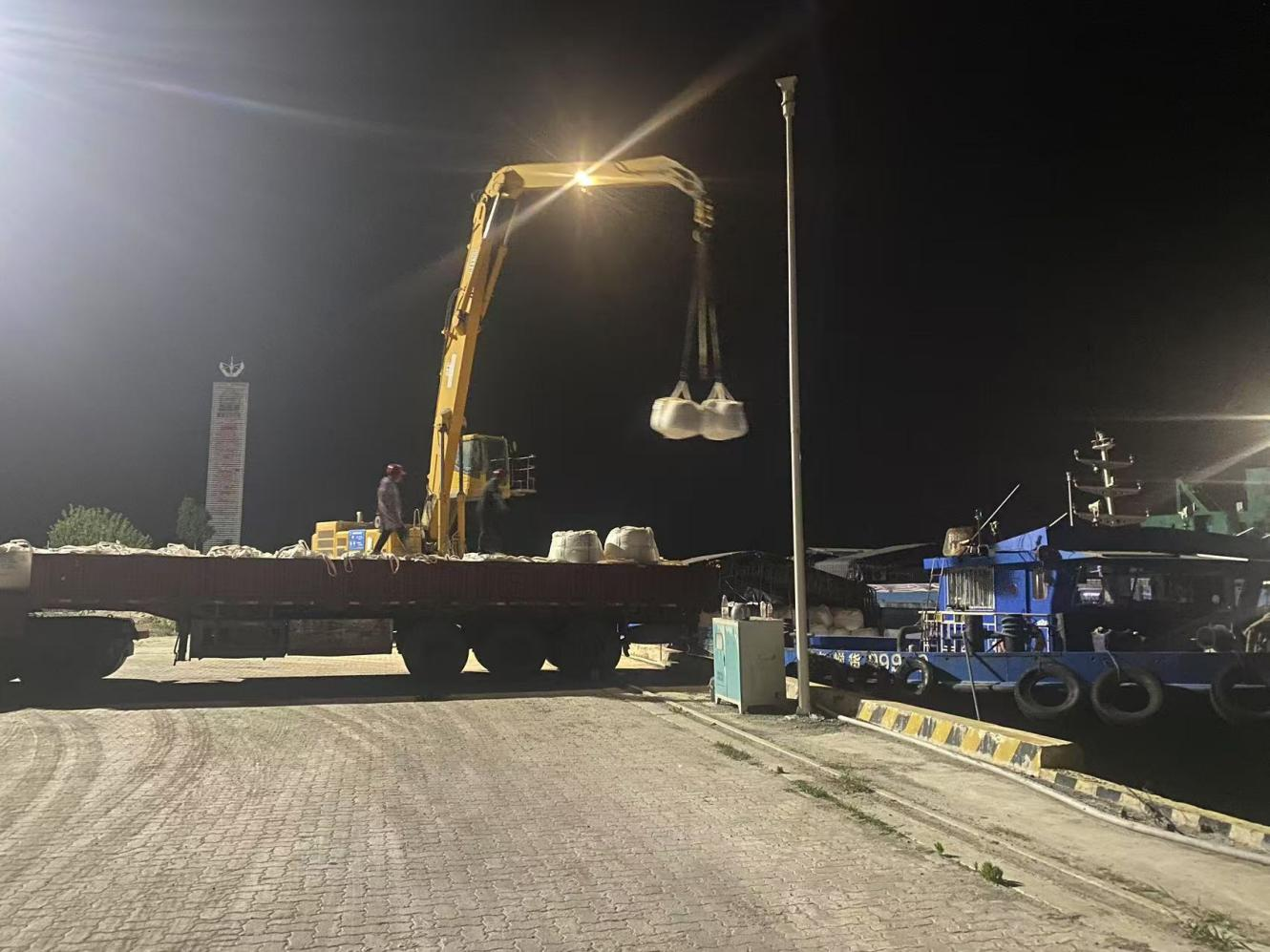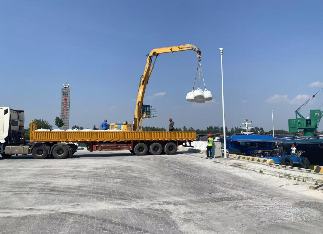 阜寧港區迎來化纖材料噸袋作業高峰