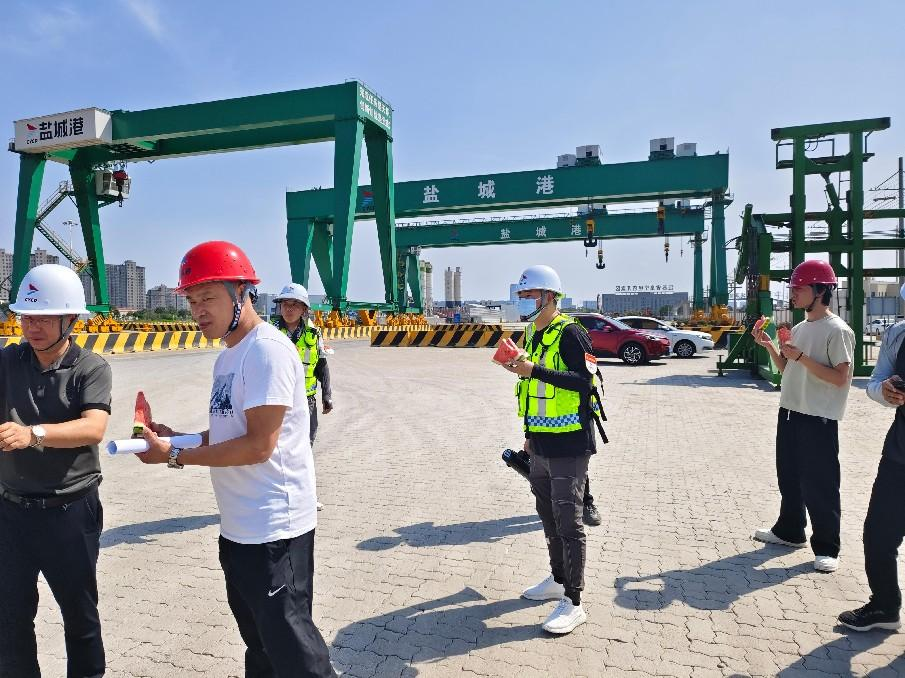 在物資慰問的基礎上,阜寧港區同步推出多項科學防暑措施,嚴格執行“抓兩頭歇中間”的錯時工作制,靈活調整露天作業時間,避開高溫時段,既保障了作業效率,又有效避免員工中暑風險。同時,增加現場灑水車作業頻次,通過定時灑水降溫,為作業區域營造相對清涼的環境。