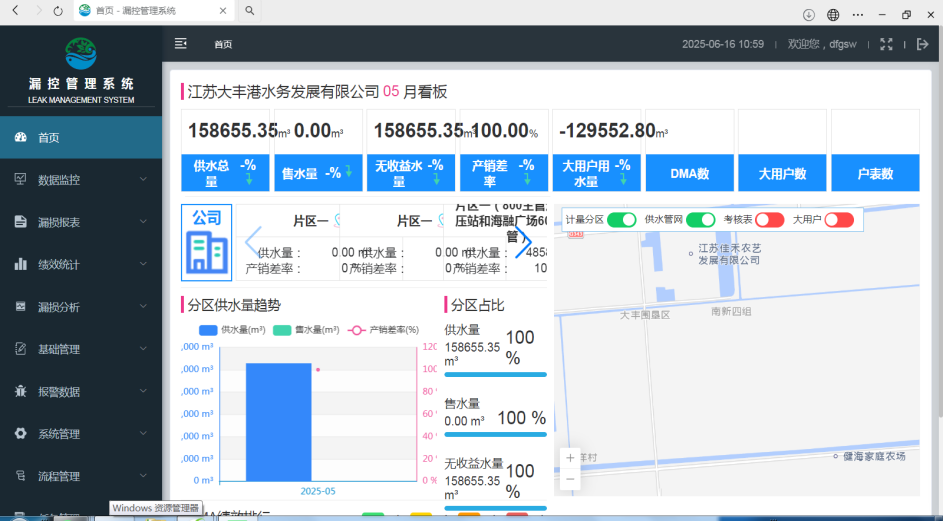 為從源頭破解供水管理被動局面,大豐港水務為供水“ 大動脈”裝上“智能天眼”:在130公里供水主管道上布設16套壓力監測設備、6套流量監測設備,構建漏損監測系統,實時在線監測管網壓力、流量,實現壓力異常15分鐘預警、漏點精準定位。通過智能化手段,推動管理模式從“被動搶修”向“主動預警”轉變,用科技賦能筑牢供水安全防線。