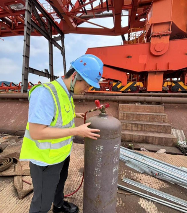 “安全沒有淡旺季!”項目組裴騰飛手持精密檢測儀器,對臨時用電逐項“過篩”,從配電箱漏電保護器的毫秒級靈敏度,到每一根電纜的敷設走向,發現私拉亂接、破皮老化立即督促整改;氧氣、乙炔瓶逐一“體檢”,間距、遮陽、防傾倒一個都不放過,超期或缺陷氣瓶現場封箱退場。逐一核對特種作業人員持證信息、三級安全教育記錄及安全技術交底資料,確保“人、證、崗”100%匹配。