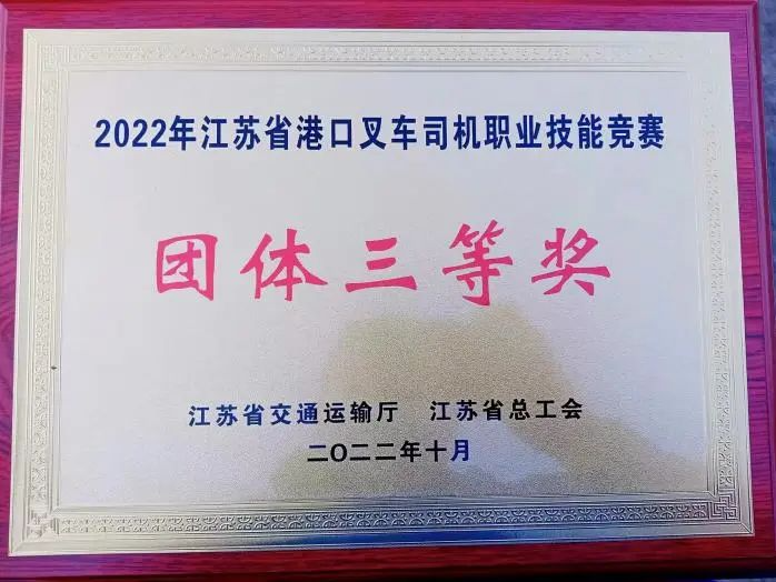 憑借精湛的技術(shù),王衛(wèi)東在江蘇省港口叉車司機(jī)職業(yè)技能競賽中獲得團(tuán)體三等獎(jiǎng),被授予“鹽城市技術(shù)能手”“鹽城市五一創(chuàng)新能手”等光榮稱號。