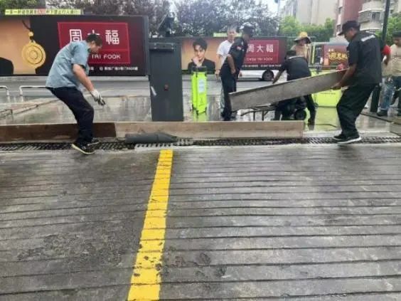隨著防汛警報響起,物業(yè)應急小組迅速集結(jié),攜帶防汛沙袋、防洪插板、抽水泵等物資設備趕赴西大門。各小組按照預案分工展開作業(yè):搶險救援組兵分兩路,第一分隊使用專業(yè)工具快速搬運并組裝鋁合金防洪插板,在車庫入口處構(gòu)筑起臨時擋水墻;第二分隊緊隨其后,用沙袋在插板后方疊筑“品”字形防洪墻,每層沙袋間用防水布加固,確保無滲漏縫隙。設備保障組同步啟動移動式抽水泵,對積水區(qū)域?qū)嵤娕抛鳂I(yè),同時安排技術人員對故障排水系統(tǒng)進行緊急搶修。全程通過智能廣播系統(tǒng)循環(huán)播放疏散提示,引導周邊居民有序撤離至臨時安置點。