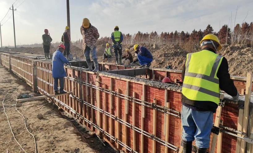 連日來,鹽農(nóng)華豐農(nóng)業(yè)和海昌農(nóng)業(yè)高標準農(nóng)田建設工地上,多臺工程機械正在新建的防滲渠旁開足馬力加緊作業(yè),幾名工人在鋼筋模板間忙著澆筑混凝土;不遠處,幾名工人在忙著綁扎鋼筋,為下一步安裝模板、澆筑混凝土做準備。自項目開工以來,公司立足實際,搶抓晴好天氣,科學組織施工力量和機械設備,緊盯時間節(jié)點,鉚足干勁搶工會戰(zhàn)。渠道開挖、鋼筋綁扎、模板安裝及混凝土澆筑有序推進,涵洞開挖及澆筑同步展開。接下來,將繼續(xù)以“搶時間、提效率、強質量”為核心,全力推進橋涵、溝道襯砌、砂石路面層等關鍵工程建設,確保項目早日建成投用,為農(nóng)業(yè)生產(chǎn)提質增效奠定堅實基礎。