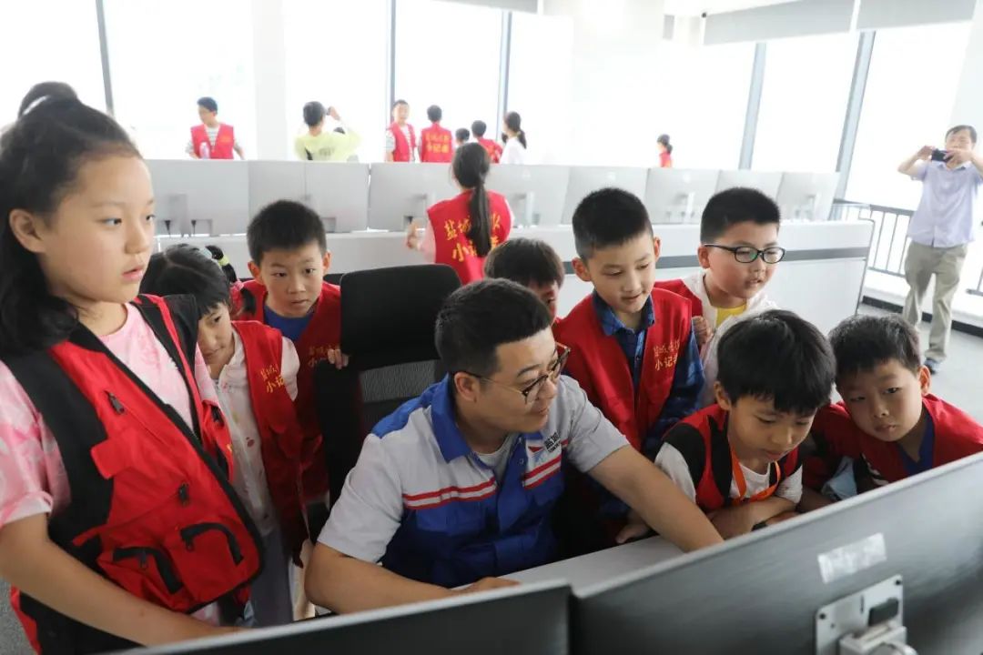 在自動化集裝箱堆場指揮中心,同學(xué)們觀看了現(xiàn)場操控,偌大的機器臂膀在工作人員的操作下精準(zhǔn)落位。學(xué)生們驚呼:“哇,這么大的家伙輕輕操作就動了嗎!”“太酷了,以后我也想操作一下!”講解員對同學(xué)們各種“新奇”的問題一一耐心、細(xì)致地講解,同學(xué)們也因此對自動化堆場表現(xiàn)出濃厚的興趣。