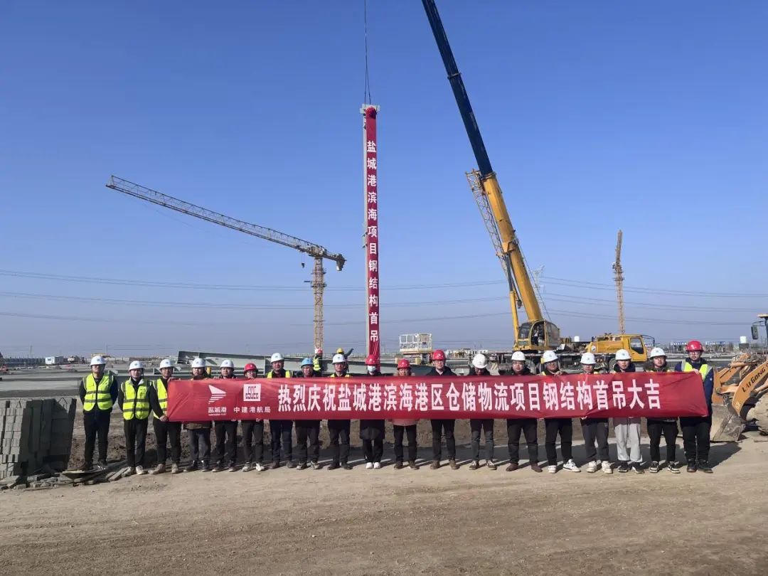 近日,濱海港區倉儲物流項目鋼結構工程1#件雜貨倉庫首根鋼柱順利起吊,標志著該項目建設全面進入倉庫主體施工階段。