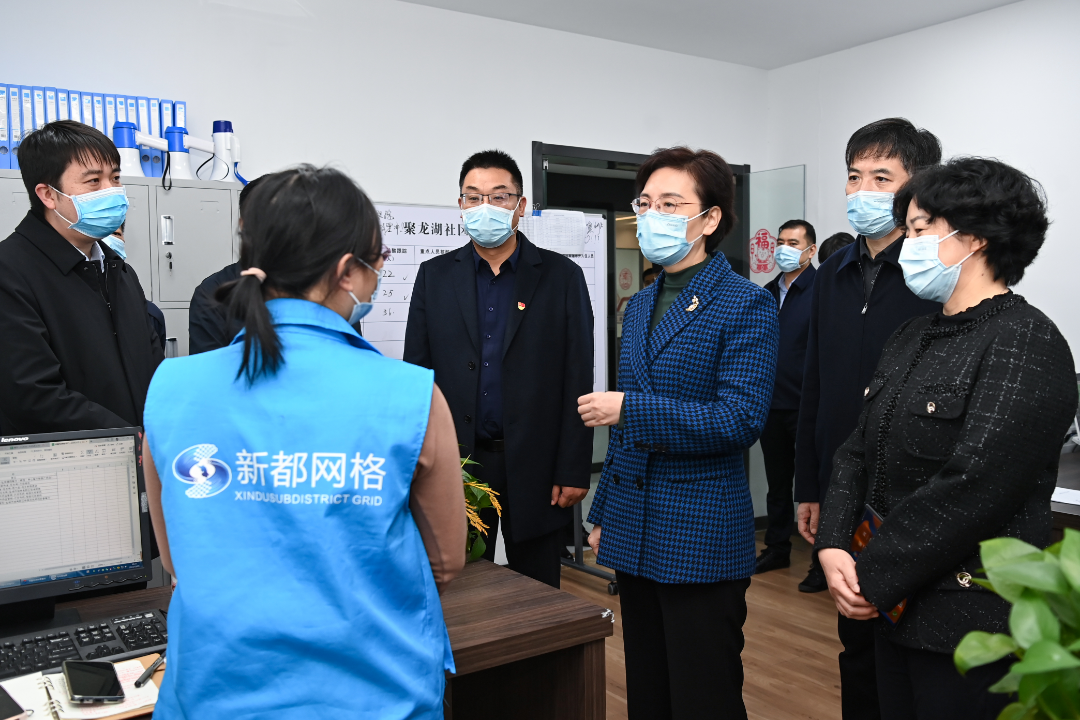 社區(qū)是疫情防控的基礎單元。在聚龍湖社區(qū),徐纓仔細檢查臺賬資料,詳細了解防控人員履職情況,要求注重信息賦能,充分發(fā)揮網格員和志愿者作用,深入摸排重點人群和重點區(qū)域,做到底數清、情況明。要加強防控政策宣傳解讀,用心用情用力做好群眾服務、爭取更多支持,牢牢把握工作主動權。