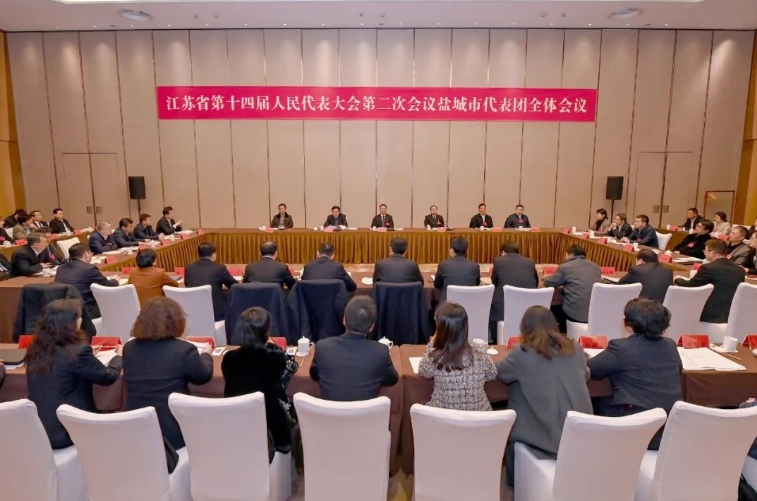 江蘇省第十四屆人民代表大會第二次會議將于1月23日上午在南京開幕。22日晚,鹽城市代表團(tuán)在駐地召開全體會議,傳達(dá)學(xué)習(xí)省兩會黨員負(fù)責(zé)同志會議精神和省委書記信長星講話要求,推選代表團(tuán)團(tuán)長、副團(tuán)長,宣布小組召集人名單,審議有關(guān)草案。