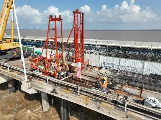 因歷時長久、負荷飽滿,引橋29#至35#排架橫梁、樁基、上部空心梁板受到不同程度的損壞,對引橋的正常使用造成一定影響。鹽城港港灣建設集團立即成立引橋搶修項目組,多次進行現場踏勘,召開引橋修復設計評審會、組織人員設備進場施工。由于搶修項目具有“急、難、險”的特點,引橋搶修項目組合理分配人材機的投入,爭分奪秒,倒排工期、掛圖作戰,確保了該搶修工程的順利進行。據項目現場負責人介紹,該項目將于施工后85天內完成,比計劃工期縮短5至7天。