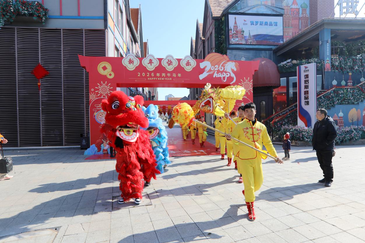 走進莎士比亞小鎮,鑼鼓喧天,金龍騰躍,舞龍舞獅的隊伍穿梭在街巷之中,為游人送上新春的第一份祝福。這一傳統民俗表演,不僅保留了節日的濃厚氛圍,更在游園會中融入了演藝、國風、科技等多種現代元素,讓“傳統”與“潮玩”碰撞出別樣的火花,呈現出兼具傳統年味與時代活力的“港泊年味場景”。