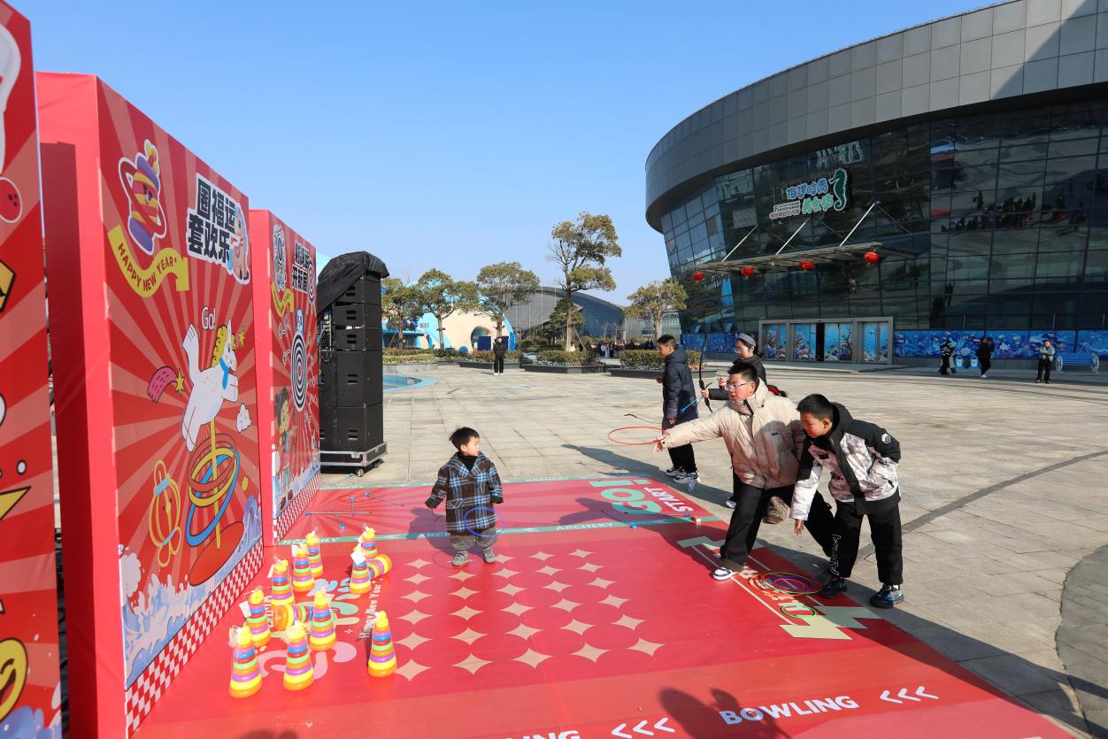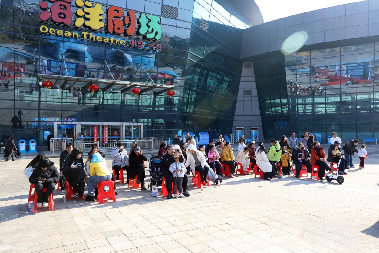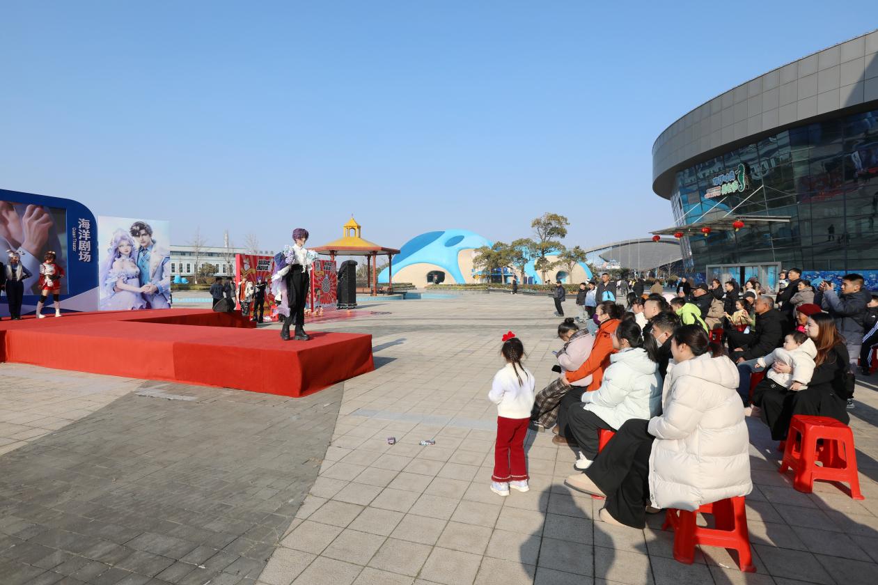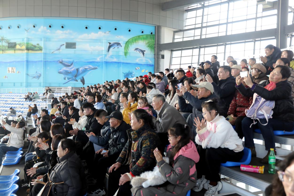 特色打卡場景前,游客們紛紛駐足,用鏡頭記錄下這份獨特的年味記憶。海豚表演區更是人氣爆棚,聰明可愛的海豚在馴獸師的指揮下,完成了一系列高難度動作,引得觀眾陣陣掌聲與歡呼。