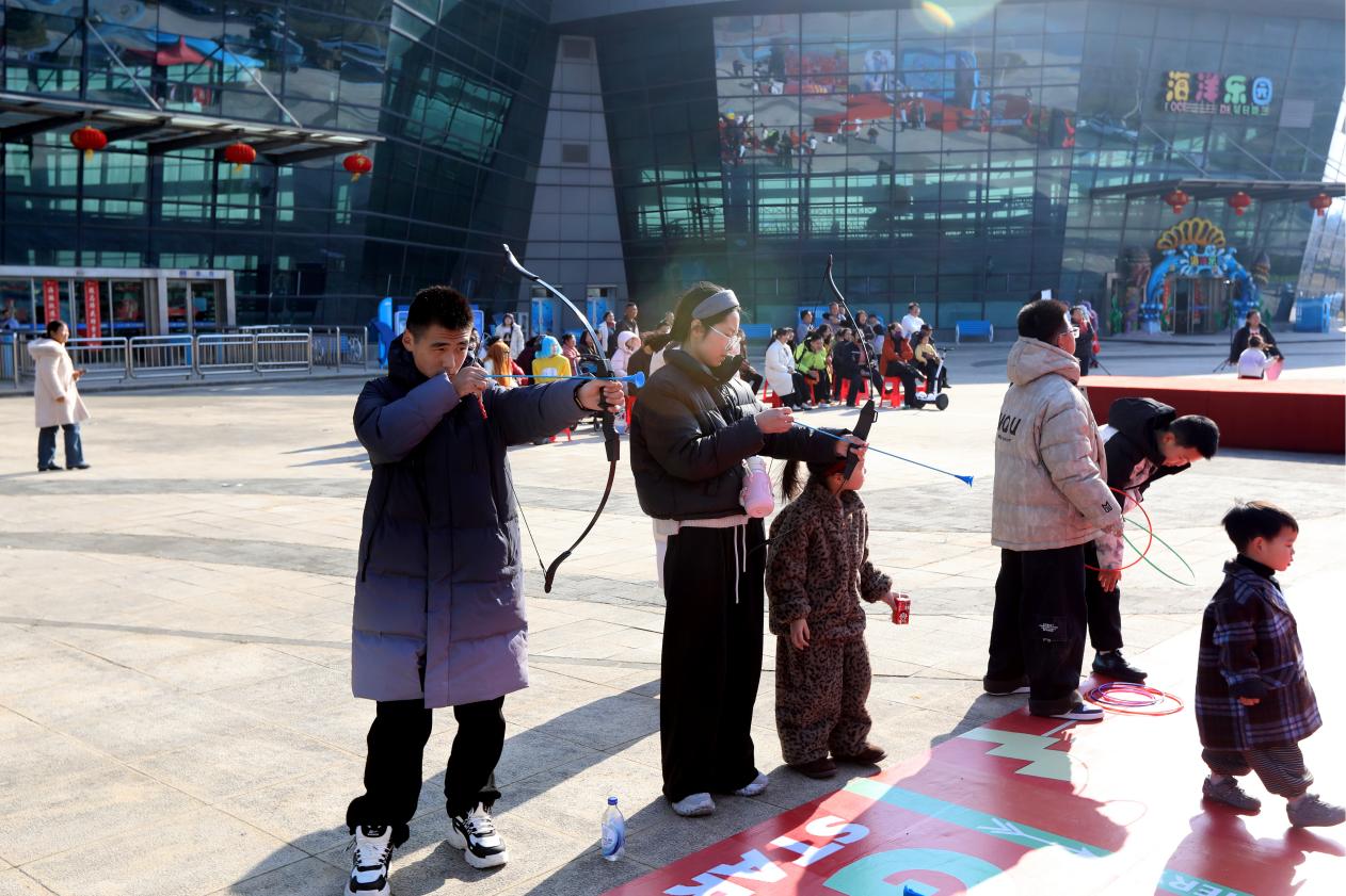 非遺市集上,傳統與現代交織碰撞。這里不僅有精美的非遺手工藝品展示,更有充滿趣味性的傳統游戲。套圈、跳球、射箭等游戲區域前圍滿了游客,大家躍躍欲試,想要一展身手,在游戲中感受傳統民俗的樂趣。玩累了,再來一串酸甜可口的糖葫蘆,那熟悉的味道瞬間喚起了兒時的記憶,為這趟游玩增添了幾分甜蜜。