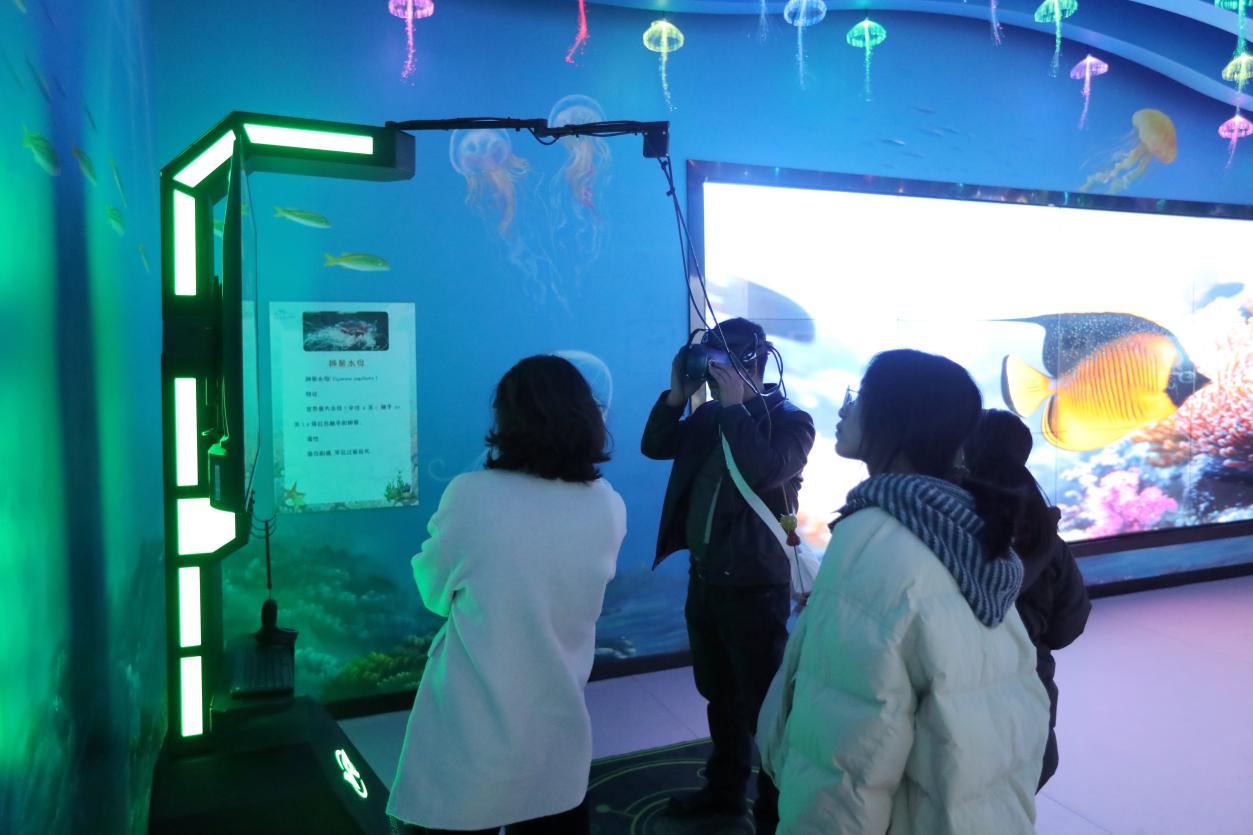 在大豐港海洋世界,港泊文旅精心打造的科技互動體驗區熱鬧非凡。這里運用 AR、VR 等現代科技,構建出逼真的海洋場景。游客們仿佛置身海底,探秘海洋奧秘,與虛擬動漫角色親密互動。一個小朋友拉著媽媽,指著科普大屏幕興奮地大喊:“媽媽,原來熒光海是這樣形成的!”臉上滿是驚奇與喜悅。